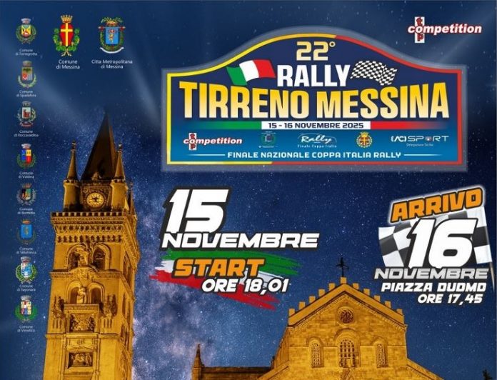 Le adesioni resteranno aperte fino a venerdì 7 novembre, in vista del grande appuntamento fissato per il weekend del 14-16 novembre, quando il capoluogo peloritano accoglierà i migliori equipaggi provenienti da ogni zona d’Italia. L’organizzazione porta la firma di Top Competition, in collaborazione con ACI Messina, con il patrocinio del Comune di Messina, della Città Metropolitana e della Regione Sicilia, affiancati da un ampio gruppo di partner pubblici e privati che sostengono una competizione di rilievo nazionale. Dopo anni di attesa, il titolo tricolore torna così nella città dello Stretto, pronta a vestire i colori dell’automobilismo e a rivivere l’atmosfera delle grandi sfide che hanno segnato la storia sportiva del territorio. L’edizione 2025 del Rally Tirreno Messina sarà una vera e propria festa del motorsport: in gara non solo i finalisti delle dieci zone della Coppa Italia, ma anche gli equipaggi non qualificati che potranno comunque iscriversi alla competizione, rendendo ancora più ricco e spettacolare il parterre di partecipanti. Per tre giorni, Messina si trasformerà nella capitale dei rally italiani, con un programma che unisce sport, tradizione e spettacolo, in una cornice paesaggistica tra mare e montagne che da sempre affascina piloti e appassionati. Il Centro Servizi e la Direzione Gara saranno allestiti nel prestigioso Palazzo della Città Metropolitana, nel cuore del centro storico, a pochi passi da Piazza Duomo, dove si terranno partenza e arrivo ufficiale della competizione. Le verifiche sportive e tecniche e il parco assistenza saranno invece ospitati al PalaRescifina, moderno impianto sportivo che diventerà il quartier generale della manifestazione, con aree dedicate ai team, ai mezzi di supporto e al pubblico. Il percorso del 22° Rally Tirreno Messina prevede undici prove speciali, distribuite in due giornate di gara. Si comincia sabato 15 novembre con le spettacolari prove serali “Le Masse” e “Reginella”, che offriranno al pubblico la magia delle corse in notturna. Domenica 16 novembre sarà la giornata decisiva, con nove prove che si annunciano impegnative e tecniche: