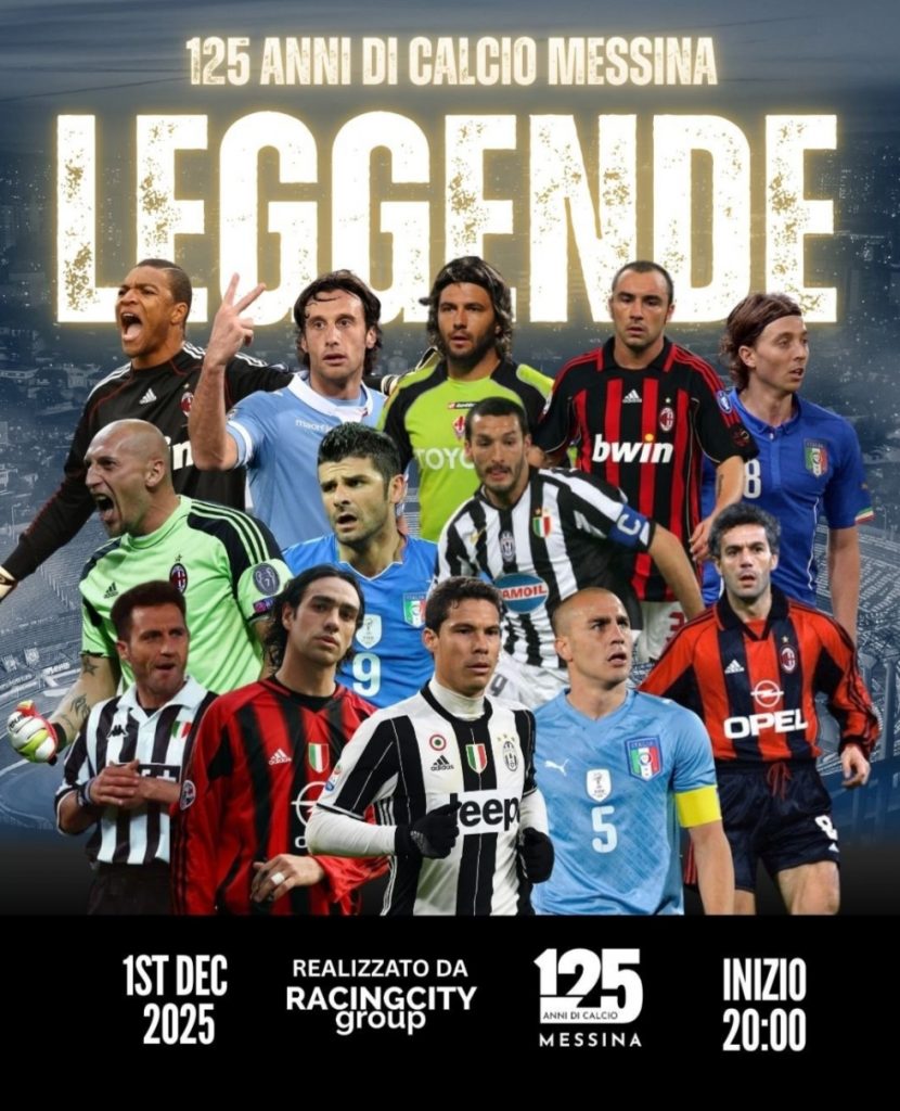 Il conto alla rovescia è ufficialmente iniziato per un appuntamento che promette di far battere forte il cuore dei tifosi peloritani. Lunedì 1° dicembre 2025, l’A.C.R. Messina spegnerà ben 125 candeline e la società ha organizzato un evento monumentale per celebrare questo storico traguardo: “Messina Legends – Un’eredità costruita sulla passione, l’orgoglio e la storia, oggi celebrata in un evento che risuonerà in tutta la Sicilia nello Stadio “Franco Scoglio” (già San Filippo), con l’inizio fissato per le ore 19.30.