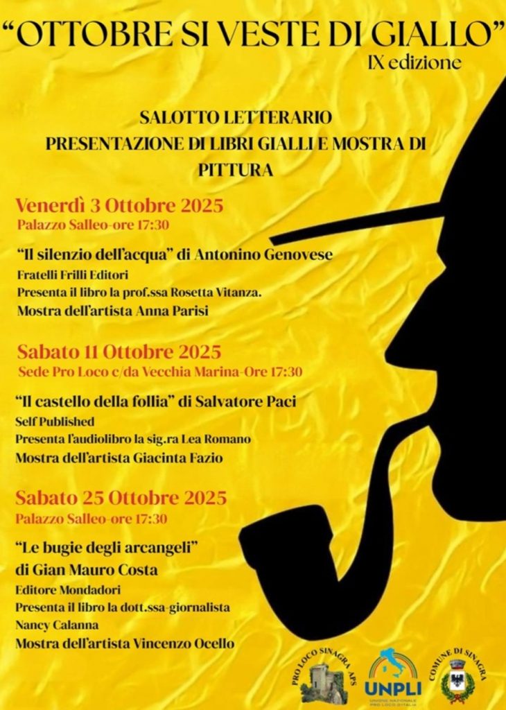 La rassegna consiste in un salotto letterario nel quale vengono presentati libri gialli associati a mostre di pittura. Tre i giorni 3, 11, 25 ottobre alle ore 17.30