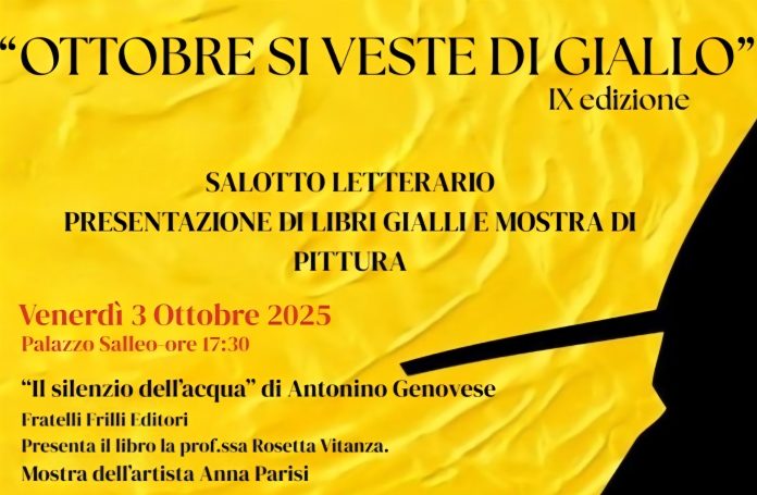 Il primo appuntamento sarà il 3.10.2025, con il libro “Il silenzio dell’acqua” di Antonino Genovese, Fratelli Frilli Editori Presenta il libro la prof.ssa Rosetta Vitanza. Mostra dell’artista Anna Parisi. Si svolgerà presso il Palazzo Salleo