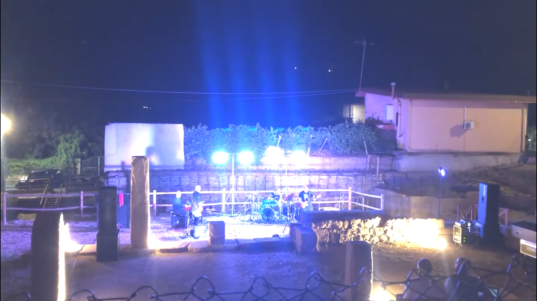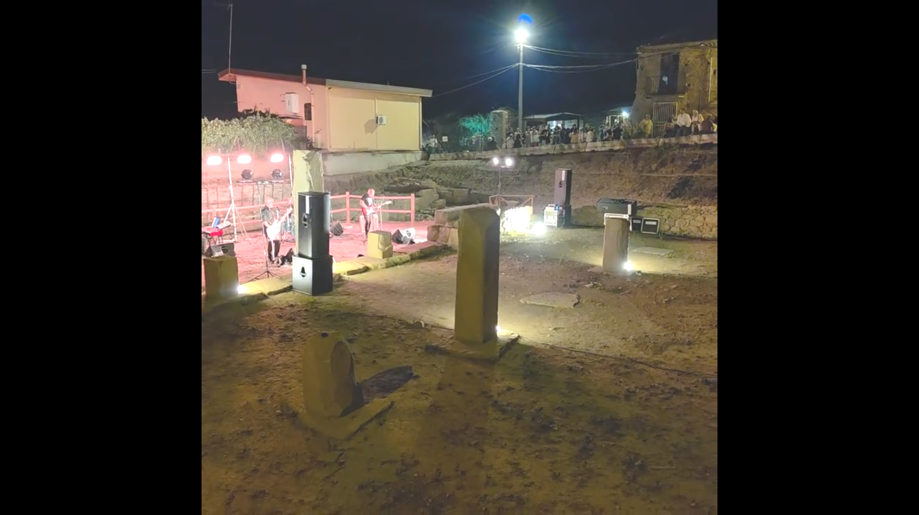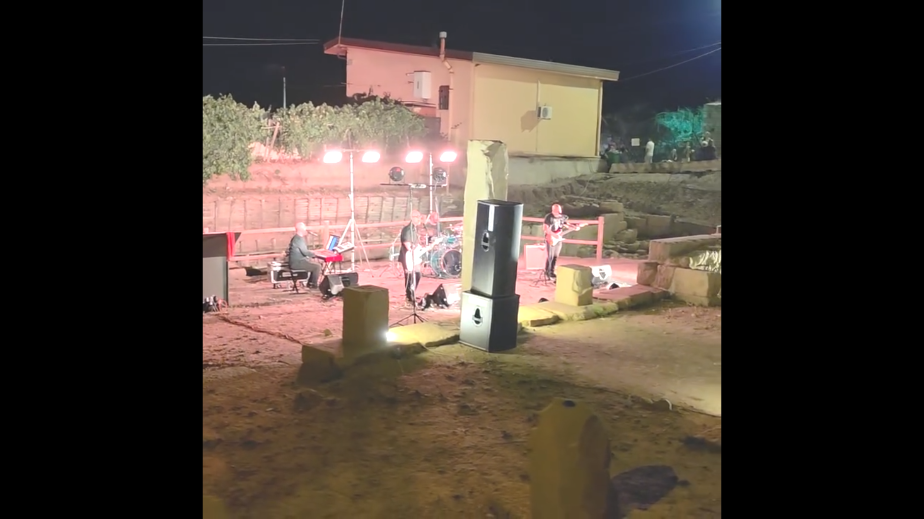 “Benvenuti ad Abakainon!”, queste le prime parole pronunciate dal bassista e cantante Christian Milone degli Eclipse ad apertura dello spettacolo tenutosi a Tripi la notte del 10 Agosto 2025 tra le rovine della nuova Agorà rinvenuta dopo i recenti scavi. Nell’ Ottobre del 1971 nell’antico anfiteatro di Pompei, i Pink Floyd, nota band inglese, si esibirono in un breve set di canzoni senza il pubblico, causa permessi sovraintendenza e sicurezza per gli scavi, il tutto venne filmato e divenne lo storico Live at Pompei che portò ulteriore fama e lustro a questo storico gruppo inglese.“Se hai un bel quadro,un bel pezzo d’arte, rimane tale, per carità, ma se gli metti una bella cornice, una giusta illuminazione nella stanza giusta, lo sottolinei, lo rendi più visibile e lo esalti, verrà visitato da molta più gente….una bella donna resta una bella donna,ma col giusto vestito,il giusto trucco e le giuste parole diventa un arma! Qui in Sicilia siamo pieni di gioielli, di posti meravigliosi, ma alcune amministrazioni comunali cercano di campare con la rendita della loro spiaggetta incantevole o della loro statuetta o montagnetta, altre amministrazioni cercano invece di “incorniciare” i loro gioielli restaurando, illuminando, pubblicizzando e proponendo eventi intorno ad essi, è facile dire in estate in Sicilia “venite abbiamo la spiaggia ed il mare pulito”, ben più difficile riuscire ad esaltare il territorio con eventi come questo” Continua così l’introduzione del leader della band che spiega inoltre come la passione del sindaco di Tripi, Michele Lemmo e lo splendido lavoro e supporto dell’assessore Carmen Merlino abbiano permesso la realizzazione di questo concerto notturno tra le rovine dell’agorà storica di Abakainon, antica città di epoca Romana. La band composta da Nicola Calderone (chitarra e voce), Christian Milone (basso e voce), Pasquale Belardo (batteria) e Tindaro Raffaele (tastiera e voce), supportata dal service di Claudio Cambria, ha proposto una raccolta di successi della storica band inglese e l’intero album The Dark Side Of The Moon in uno scenario evocativo, surreale. Durante l’esecuzione si riusciva a percepire il silenzio di un pubblico educatissimo, attento e preparato, il sussurrare di un vento ancestrale che soffiava fra le antiche rovine, sembrava aiutare la band a lanciare le note in un’altra epoca. I volumi erano contenuti e le luci solo “d’accompagnamento” perché in un luogo del genere ci si va con rispetto si tolgono le scarpe e si lasciano all’ingresso! Se si ama il caos ci sono i lungomare, i lidi e le discoteche, qui è come stare al teatro per seguire una messa! Esatto! Una messa spirituale che, durante le improvvisazione di Echoes, brano di 23 minuti, ha lasciato gli ascoltatori e persino la band in uno stato di trans evocativa che quasi ha permesso di dialogare con le anime antiche che avevano calpestato le pietre di quell’agorà,magari discutendo di commerci. Un esperienza unicamente spirituale, dove la musica e le luci servivano solo per accompagnare il viaggio nel silenzio, nell’introspezione, non a caso alla fine dell’esibizione niente convenevoli, niente festeggiamenti con botti e frastuoni, ognuno lasciando il posto era come raccolto in preghiera, e nonostante la presenza di vari punti ristoro con degustazioni enogastronomiche, il silenzio e la pace interiore sono scesi sulla gente che ha proseguito la serata in maniera composta e rilassata. Grande lavoro dell’amministrazione comunale di Tripi che anche grazie alla Regione Siciliana ha offerto ai visitatori una sorta di vacanza in un centro benessere per l’anima, una SPA per lo spirito, incaricando la storica band Eclipse, del nostro hinterland, di accompagnare il pubblico in questo viaggio nelle emozioni. Gli Eclipse sono una tribute band dei Pink Floyd, originaria di Barcellona Pozzo di Gotto nati da un idea del chitarrista e del bassista (Nicola Calderone e Christian Milone) circa 28 anni fa…sul territorio è infatti una delle band più longeve che ha visto l’alternarsi di tanti musicisti,session man e collaboratori,senza mai prescindere dallo storico duo fondatore, che cerca di riproporre i successi dei Pink Floyd, oltre che in pub e locali vari della provincia, anche in manifestazioni a tema, in teatri e arene. Noi di Sicilia Tabloid eravamo sul posto, perché avevamo la sensazione che non sarebbe stato il classico evento estivo, ma qualcosa da ricordare, da incorniciare in un articolo per raccontare a chi non c’era.