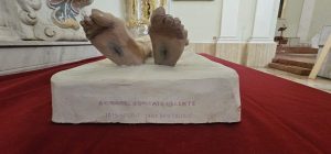 Fondamentale inoltre la presenza del fedele Vito Arrico, ormai memoria storica imprescindibile della varetta e intrecciatore responsabile della palma decorativa. Durante la consegna dei lavori, mentre veniva estrapolato il Cristo morto dalla varetta, che rimarrà in chiesa perché non interessato dalle operazioni programmate, si è potuto apprendere l’eccezionale scoperta che ha catturato immediatamente l’interesse del Direttore dei Lavori architetto Cristelli, che la scultura in legno massello è stata restaurata dall’artista “pozzogottese” Iris Isgrò. Una notizia sicura che si legge a chiare lettere ai piedi del cataletto su cui giace la scultura del Cristo morto che aggiunge nuova memoria e nuovo interesse all’intera varetta.