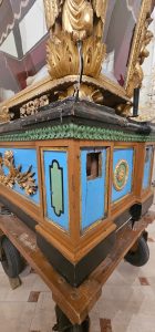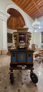Venerdì 20 giugno 2025 alle ore 9,00, come da cronoprogramma, il laboratorio familiare di Giovanni Calvagna che opera con i due figli Carmelo e Giuseppe, ha preso in consegna la “Varetta del Cristo Morto” del Venerdì Santo di Pozzo di Gotto (ME), come da accordi con il committente, in qualità di Parroco e legale rappresentante pro tempore della Parrocchia di Santa Maria Assunta in Barcellona Pozzo di Gotto (ME) Mons. Santo Colosi, col Direttore dei Lavori architetto Rosario Andrea Cristelli e con le famiglie patrocinanti.