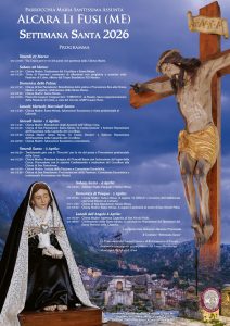 Il borgo nebroideo di Alcara Li Fusi si prepara a vivere uno dei momenti più intensi, sentiti e suggestivi del suo calendario liturgico: la Settimana Santa 2026. Un programma ricco di devozione, curato dalla Parrocchia Maria Santissima Assunta e dal Comitato “Settimana Santa”, che trasforma le vie del paese in un palcoscenico di spiritualità antica e profonda, dove la liturgia incontra la tradizione popolare e la sacra rappresentazione.