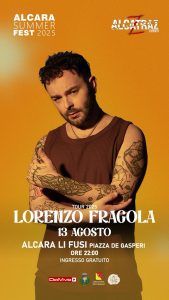 Alcara Summer Fest 2025: il 13 agosto grande musica con Lorenzo Fragola in concerto e dj set fino a tarda notte.