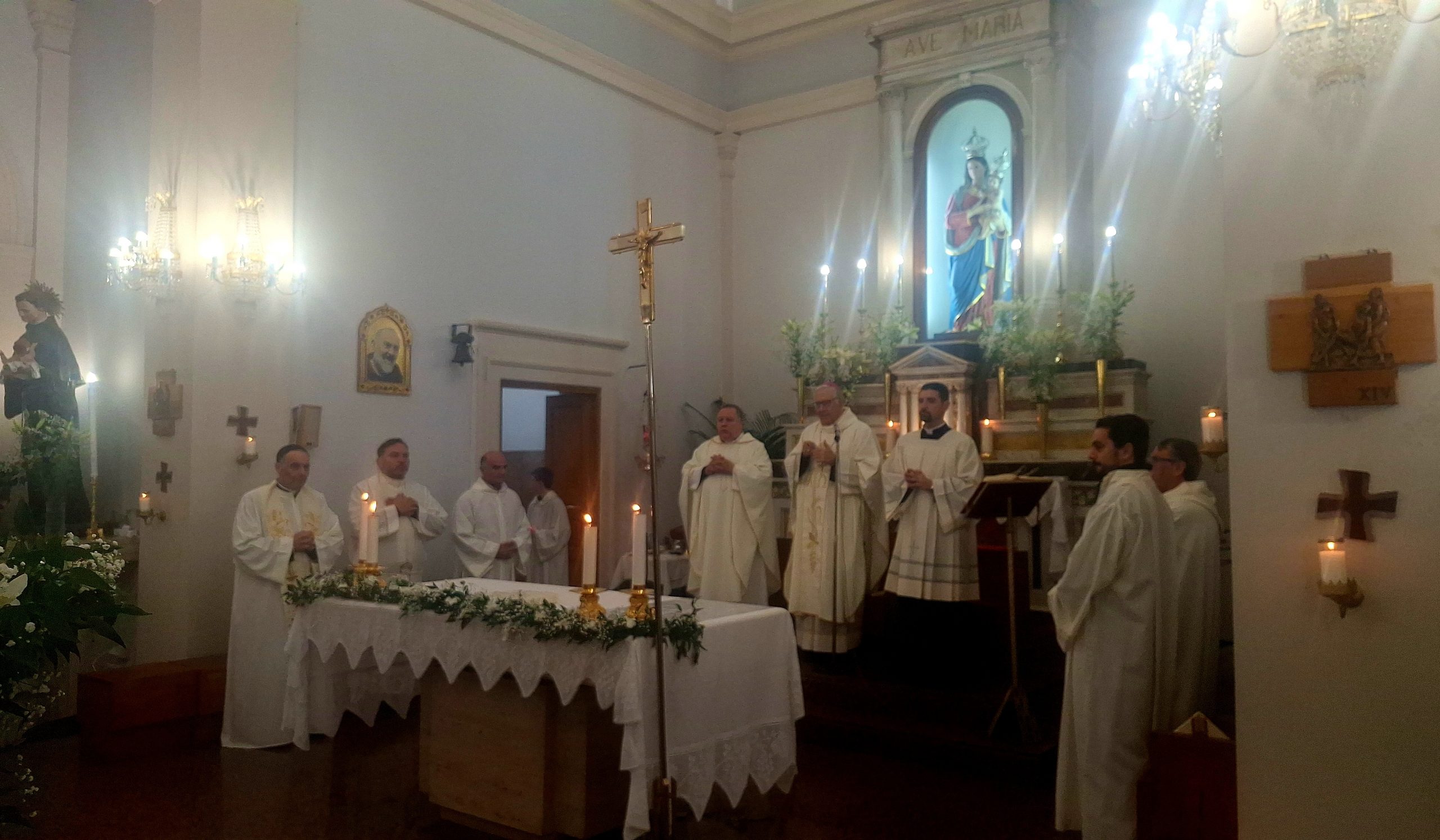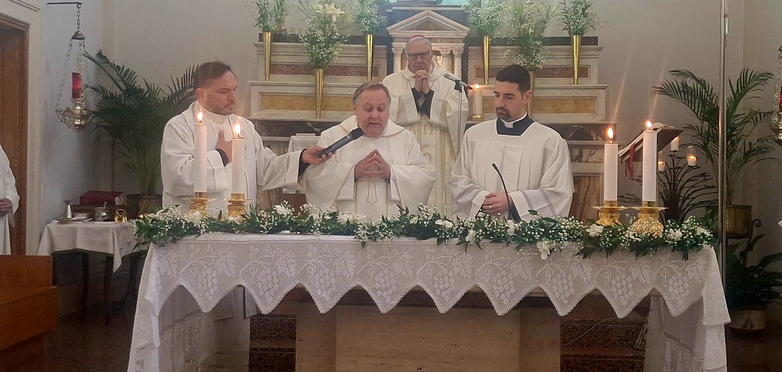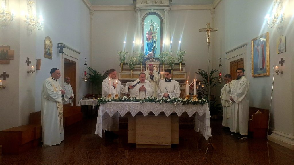 A rendere l’evento ancora più speciale è stata la massiccia presenza di amici e fedeli provenienti dalle precedenti tappe del percorso di Padre Salvatore: la Comunità di Santa Maria dell’Idria giunta in pullman da Barcellona Pozzo di Gotto e parecchi rappresentanti del suo paese d’origine Merì, compreso Don Damiano La Rosa, parroco della Parrocchia Santa Maria Annunziata, presente per sostenere il sacerdote e l’amico.