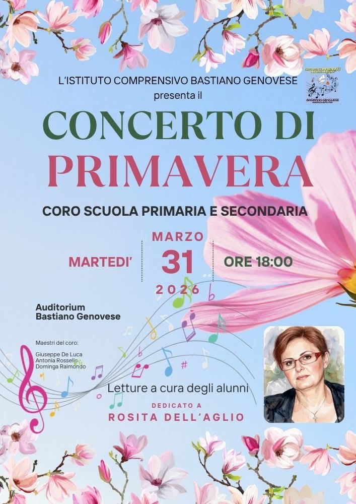 L’Istituto Comprensivo “Bastiano Genovese”, guidato dalla Dirigente Scolastica Prof.ssa Franca Canale, si appresta a dare il benvenuto alla bella stagione con un evento che promette di andare ben oltre il semplice saggio scolastico: il “Concerto di Primavera”. L’appuntamento è fissato per oggi martedì 31 marzo 2026, alle ore 18:00, presso l’Auditorium dell’istituto.