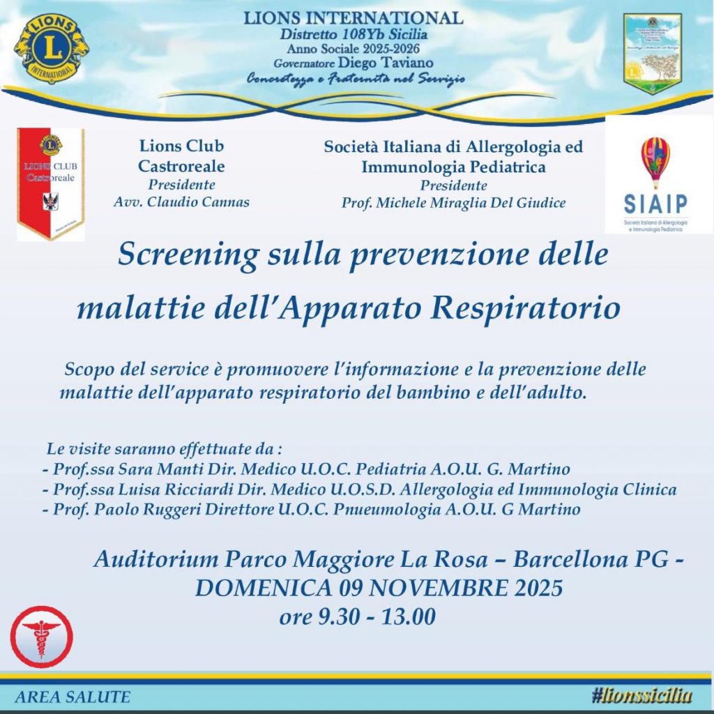 Il Service è organizzato dal Lion Club Castroreale, presieduto dall’Avv. Claudio Cannas in collaborazione con la SIAAIC Sicilia (Società Italiana di Allergologia, Asma e Immunologia Clinica – Sezione Sicilia) e con la SIAIP (Società Italiana di Allergologia e Immunologia Pediatrica).