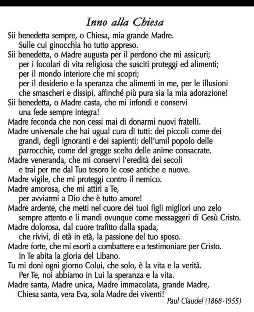 Proprio Claudel, autore del celebre dramma “L’annuncio a Maria” (opera a cui lavorò per oltre cinquant’anni, dal 1892 al 1948), ha fornito i versi per un tributo emozionante. Durante la celebrazione di domenica scorsa, 22 marzo, Padre Iannello ha recitato l’Inno alla Chiesa composto dal poeta, trasformando il momento liturgico in un ponte tra la maestosità delle pietre della Basilica e la profondità della parola poetica.