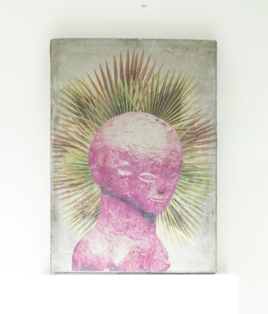 Tecnicamente ho fatto un collage di immagini selezionate online, stampate digitamente e trasferite su un supporto di cemento che rimandano al concetto di feticcio.