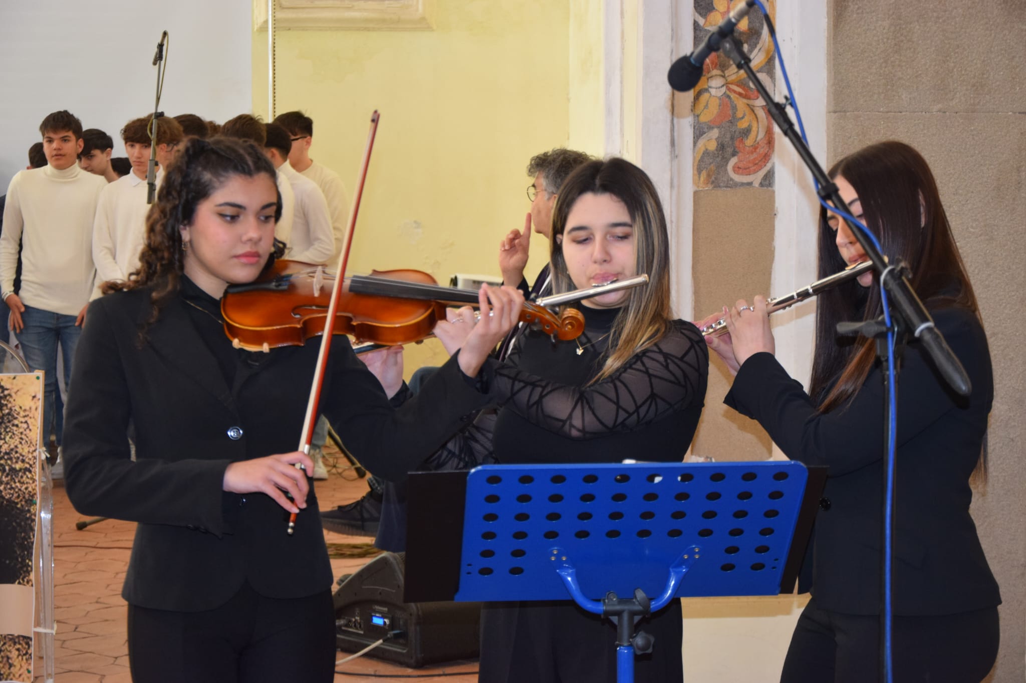 Le Foibe sono delle cavità carsiche, voragini utilizzate come discarica dai tempi degli Asburgo; dopo il 1945 venivano gettati i dissidenti sloveni, croati, oltre che italiani. Norma Crosetto fu la prima donna vittima mutilata dai partigiani slavi, mentre i cani neri facevano da guardiani.” Quindi il Cav. Ruocco ha fatto l’elenco delle vittime chiedendo un minuto di silenzio. Adele Arcoraci della 2ª A del Liceo “Medi” ha recitato la poesia “Il cielo non si accese d’azzurro”, accompagnata da Aida D’ Amico al violino. Ruocco ha quindi declamato “Italia” di Ungaretti. Si è così chiusa la prima parte.