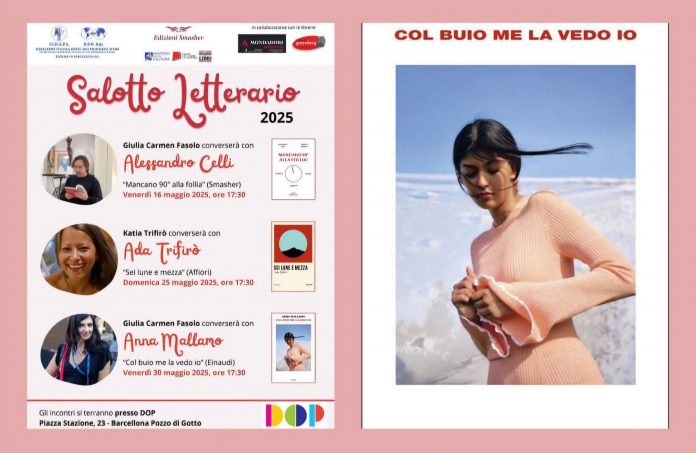 Ultimo appuntamento venerdì 30 maggio alle ore 17.30 per il Salotto Letterario 2025 organizzato dalla Fidapa Barcellona insieme ad Edizioni Smasher: si chiude con una presenza importante, Anna Mallamo col suo romanzo “Col buio me la vedo io” (Einaudi).