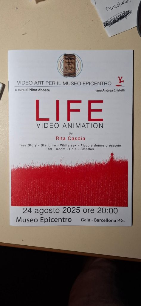 Si sono conclusi gli eventi culturali estivi al Museo Epicentro di Barcellona Pozzo di Gotto in località Gala domenica 24 agosto 2025 con un grande successo di pubblico: molto apprezzata la proiezione della Video Animation di Rita Casdia dal titolo “LIFE” .