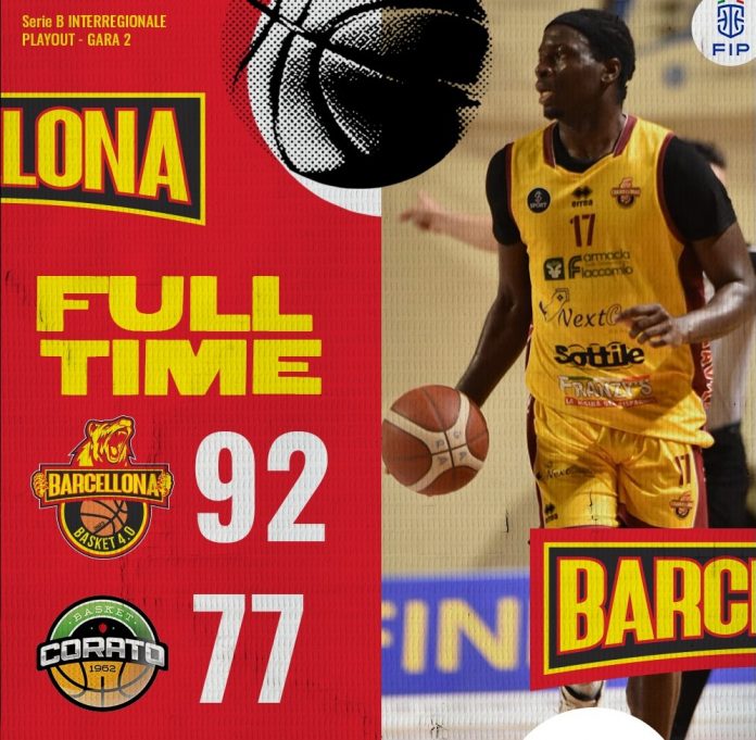 Barcellona Pozzo di Gotto – Il Barcellona ritrova se stesso nel momento più difficile della stagione. Dopo la sconfitta in gara 1, la squadra di coach Costantino reagisce con carattere, intensità e lucidità nei momenti chiave, imponendosi su Corato con il punteggio di 92-77. Una vittoria che vale l’1-1 nella serie e rimanda ogni verdetto allo spareggio decisivo in terra pugliese.