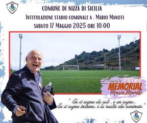 Nizza di Sicilia – Un nome, una storia, un’eredità di valori che va oltre il calcio. Sabato 17 maggio 2025, alle ore 10.00, il Comune di Nizza di Sicilia e la Società Valdinisi Calcio renderanno omaggio a Mario Manoti, figura storica e amatissima della comunità sportiva locale, con una cerimonia solenne per l’intitolazione dello stadio comunale alla sua memoria. Un gesto simbolico, ma profondamente sentito, per ricordare un uomo che ha fatto del campo da calcio il luogo di una vita intera spesa al servizio dei giovani, dello sport e della sua comunità. La cerimonia sarà aperta a famiglie, amici, dirigenti, ex giocatori e tifosi, invitati a partecipare numerosi per condividere insieme questo momento di forte valore umano e sociale. Mario Manoti non è stato soltanto un allenatore, un dirigente o un appassionato di calcio, ma è stato, soprattutto, un punto di riferimento. La sua figura incarna l’anima profonda dello sport dilettantistico, fatto di dedizione, rispetto, spirito di sacrificio e amore per il territorio.