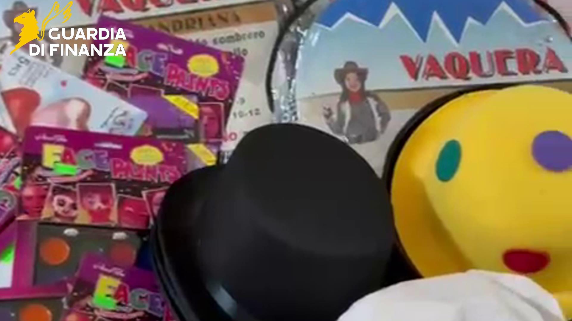 L’attenzione delle Fiamme Gialle si é concentrata sull’analisi dei canali di distribuzione locali in vista delle celebrazioni del carnevale, permettendo di individuare e sottoporre a sequestro amministrativo circa 3000 articoli, tra cui maschere, costumi per bambini, parrucche, accessori per il travestimento e cosmetici.