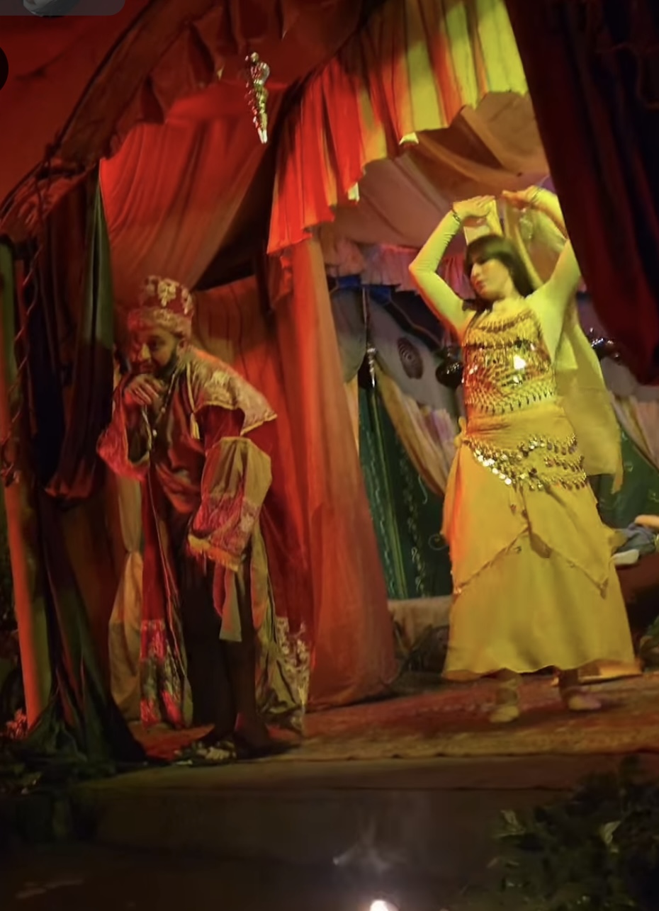 Ad un livello inferiore: i laboriosi artigiani che impastano il pane, o lavorano il legno; le musiche orientali con le le odalische e il lussurioso Erode; i romani che si ingozzano di ogni ben di Dio; il rumoroso Bazar; i sacerdoti del tempio che blaterano false morali.