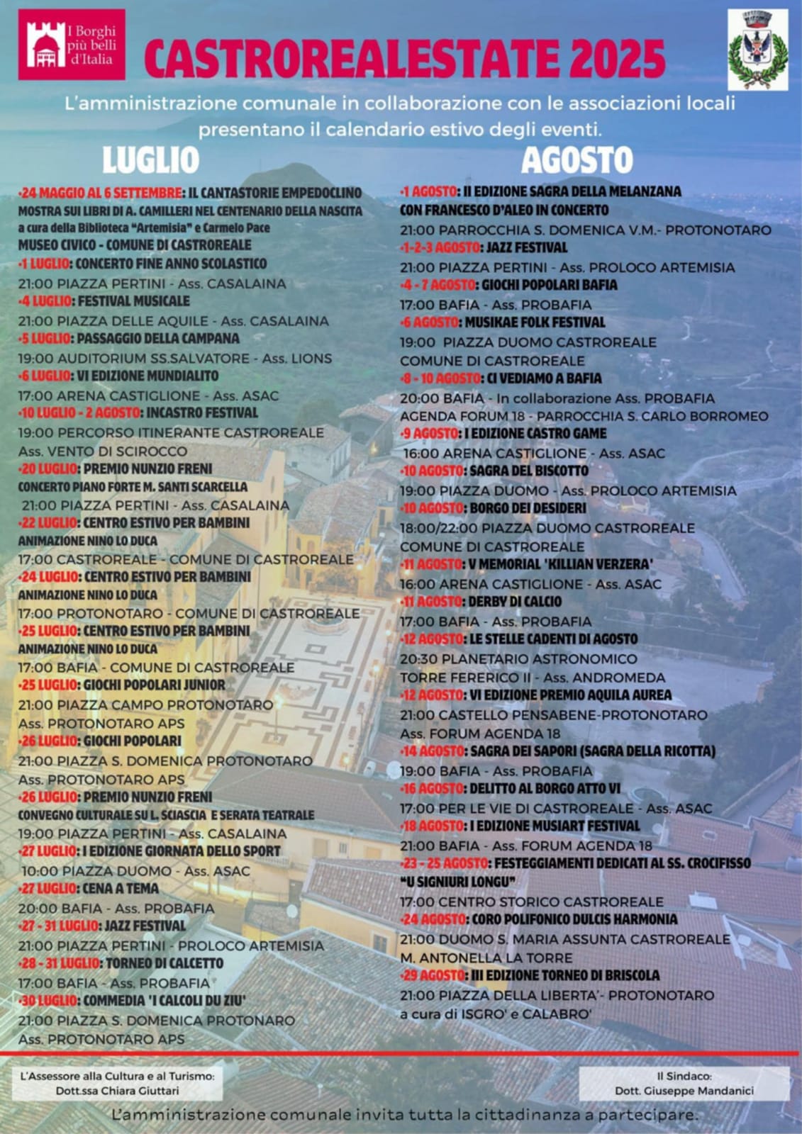 Anche quest’anno un Cartellone estivo ricco di appuntamenti da godere a Castroreale, uno dei borghi più belli d’Italia, affacciato da un lato sul mare mare e dall’altro dominato dai monti, con tanta storia, la meridiana a camera oscura sita nel Duomo, le statue del Gagini e la Torre di Federico.