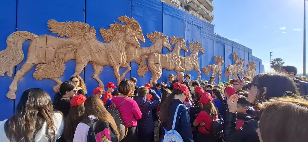 ”Cavalli nel vento” (Filippo Messina): Un bassorilievo lungo il muraglione di viale Nitta con cento cavalli in corsa. L’artista spiega: «Ho voluto trasformare un muro in un varco di speranza. I cavalli rappresentano il coraggio e la forza di chi non smette di credere nel proprio futuro».