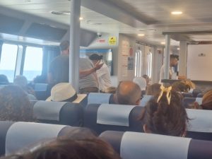 Allertata un’ambulanza del 118 giunta al porto di Milazzo alle 14.05, dopo 5 minuti dall’attracco, che sta trasportando la donna al “Fogliani”. Sicuramente il gran caldo di questa giornata ha provocato il malore.