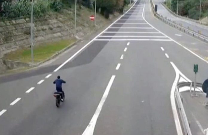 FOLLIA sull’autostrada A18, 23enne contromano su una bici rubata: BLOCCATO DALLA POLIZIA