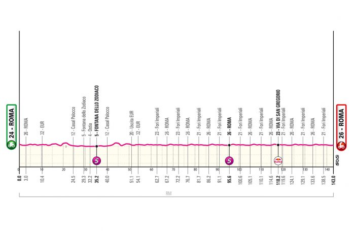 La 21a e ultima tappa si svolge interamente a Roma, con un percorso spettacolare che ha unito litorale e centro storico. Dopo la partenza nella zona dell’EUR, i corridori lambiranno la Città del Vaticano e raggiugeranno Ostia, per poi rientrare verso il cuore della città. Il finale è sviluppato su un circuito cittadino di 9,5 km da ripetere otto volte, toccando luoghi iconici come via dei Fori Imperiali, Corso Vittorio Emanuele II, il Lungotevere, via di San Gregorio e l’arrivo al Circo Massimo. Un tracciato tecnico e suggestivo, tra lunghi rettilinei, curve insidiose e alcuni tratti in pavé, che farà da cornice ideale al brindisi del gruppo e allo sprint finale, atteso come sempre nelle ultime tappe di un grande giro. La passerella romana sarà l’occasione per celebrare il successo di Yates, ma anche un palcoscenico per i velocisti. Sul circuito cittadino si prevede un arrivo in volata, con un rettilineo finale di 350 metri su asfalto, largo 8 metri e con una lieve pendenza al 5% a metà dell’ultimo chilometro. Tra i favoriti spiccano Mads Pedersen, Olav Kooij, Casper Van Uden, Corbin Strong, Kaden Groves e Orluis Aular.