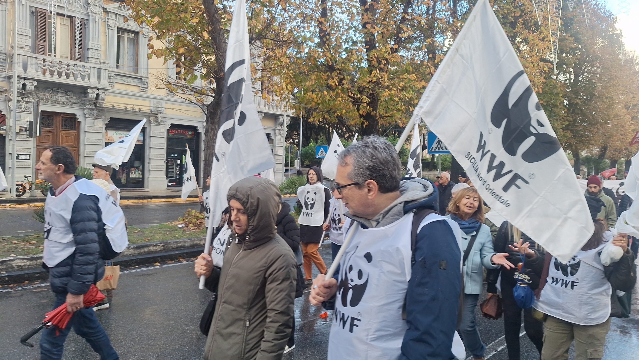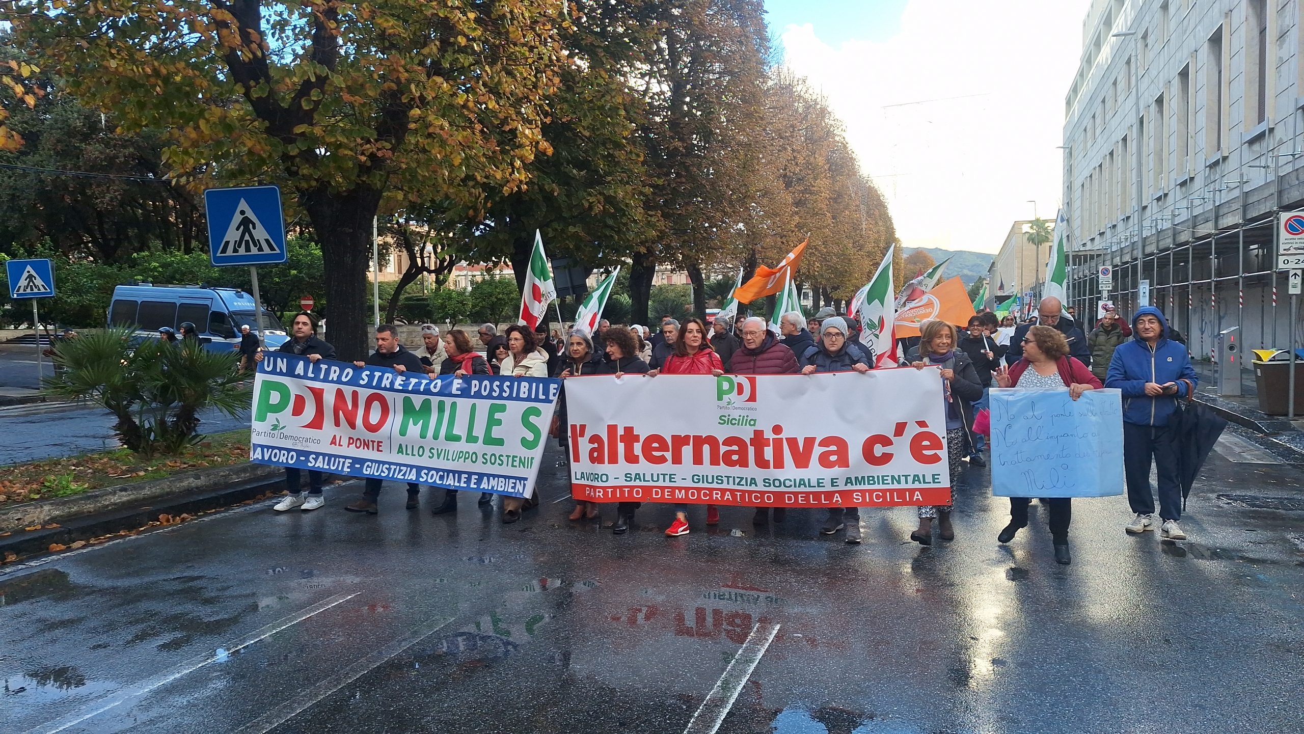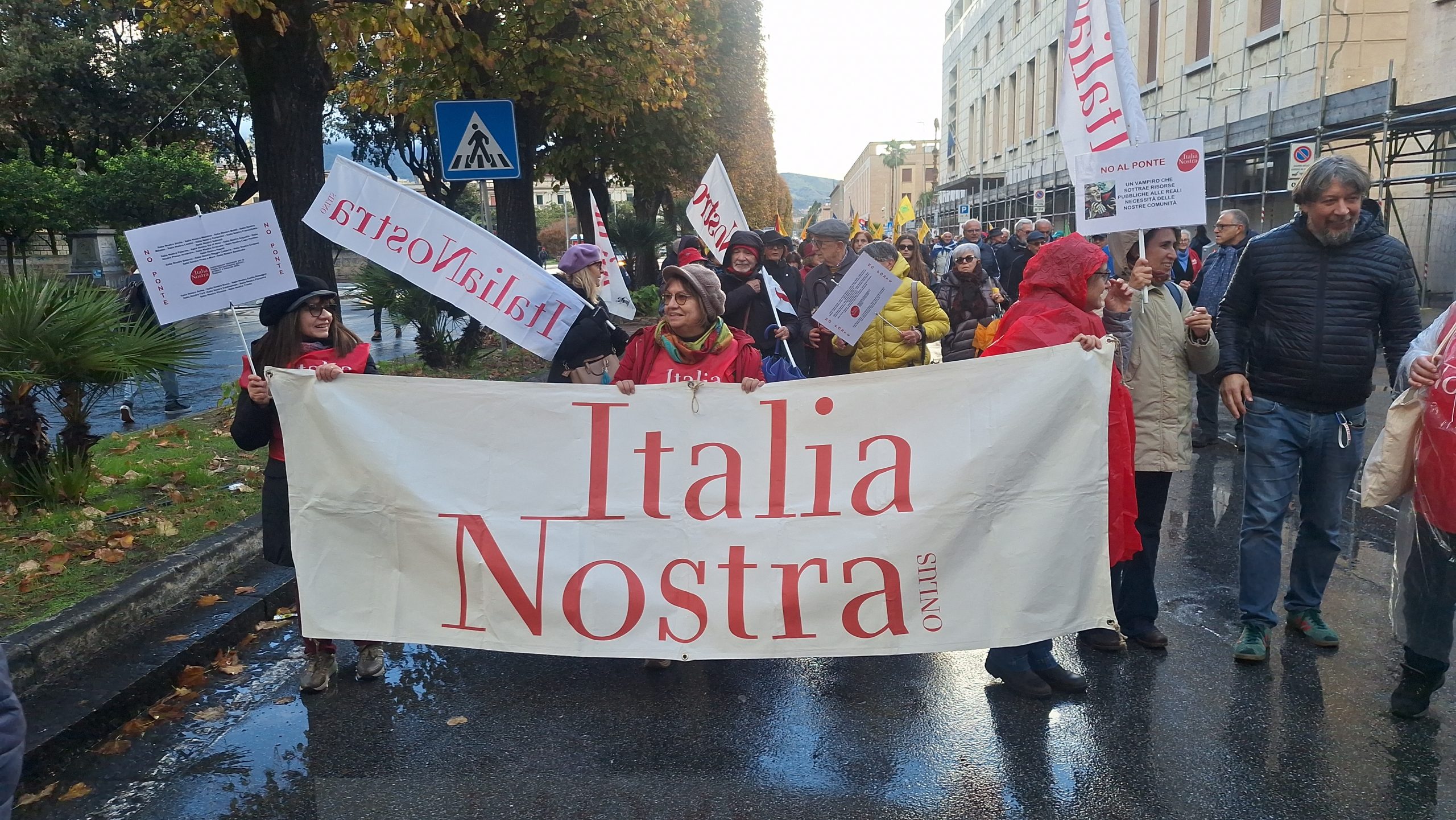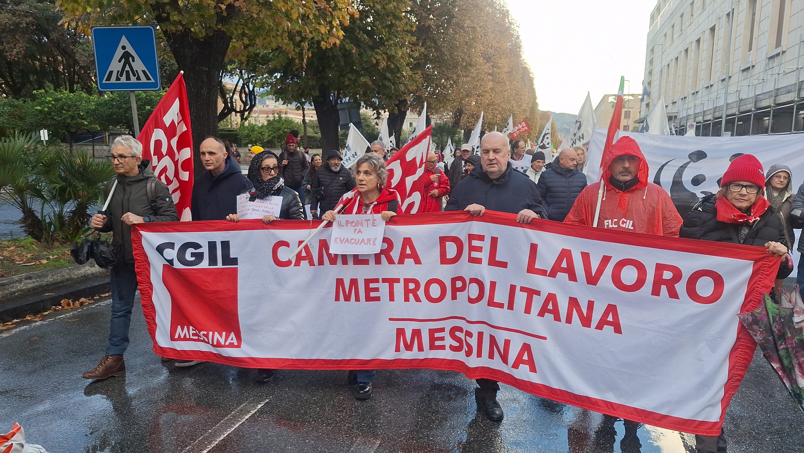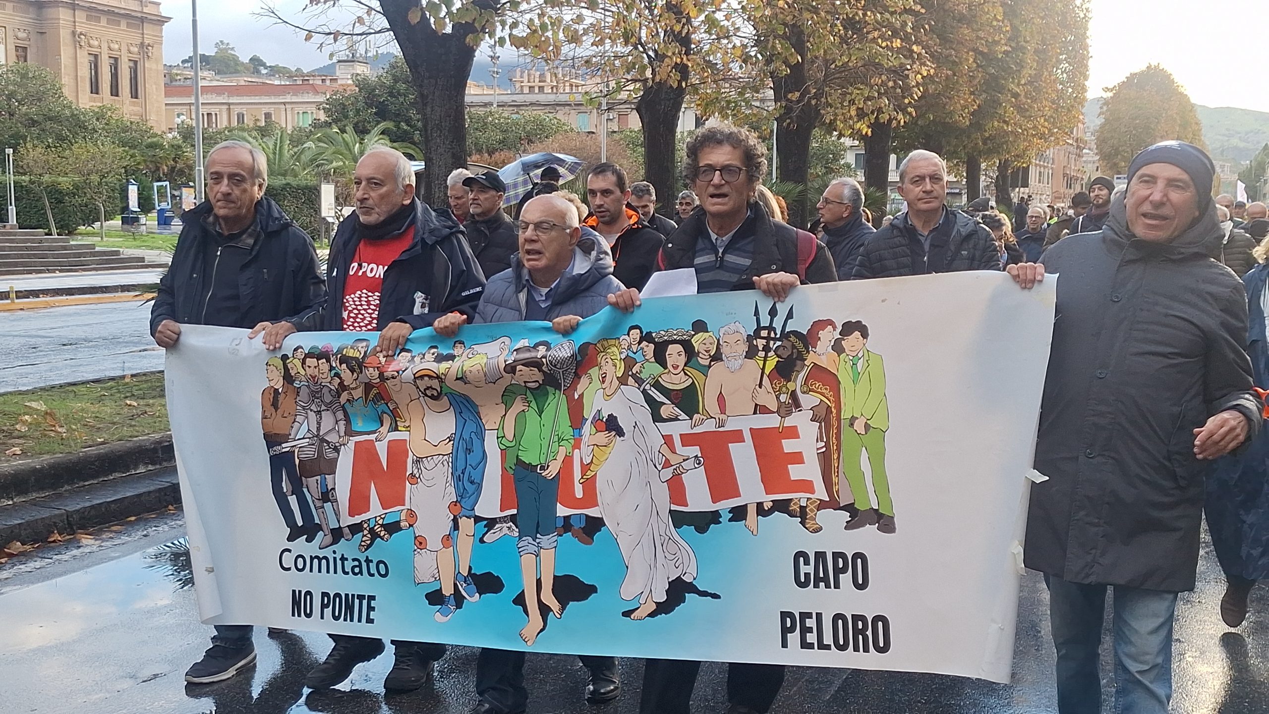Il coloratissimo corteo era partito alle 14.30 da Piazza Castronovo, tantissime le sigle, le bandiere, i gruppi, tutti uniti nel no alla colossale opera voluta dal Governo, gridando e cantando slogan anche divertenti, come ad esempio “Lo dice il pesce spada, lo dice il capodoglio, il Ponte sullo Stretto non lo voglio!”. Percorso della Vara, tutta la Via Garibaldi e la “virata” di Via Primo Settembre verso Piazza Duomo, mentre una parte dei manifestanti ha “saltato” i comizi per recarsi direttamente a Piazza Unione Europea, dove, ai piedi di Palazzo Zanca, sede del Comune di Messina, si sono esibiti alcuni musicisti. Purtroppo l’arrivo della pioggia ha costretto gli organizzatori a sospendere tutto in modo anticipato, già intorno alle 18.30.