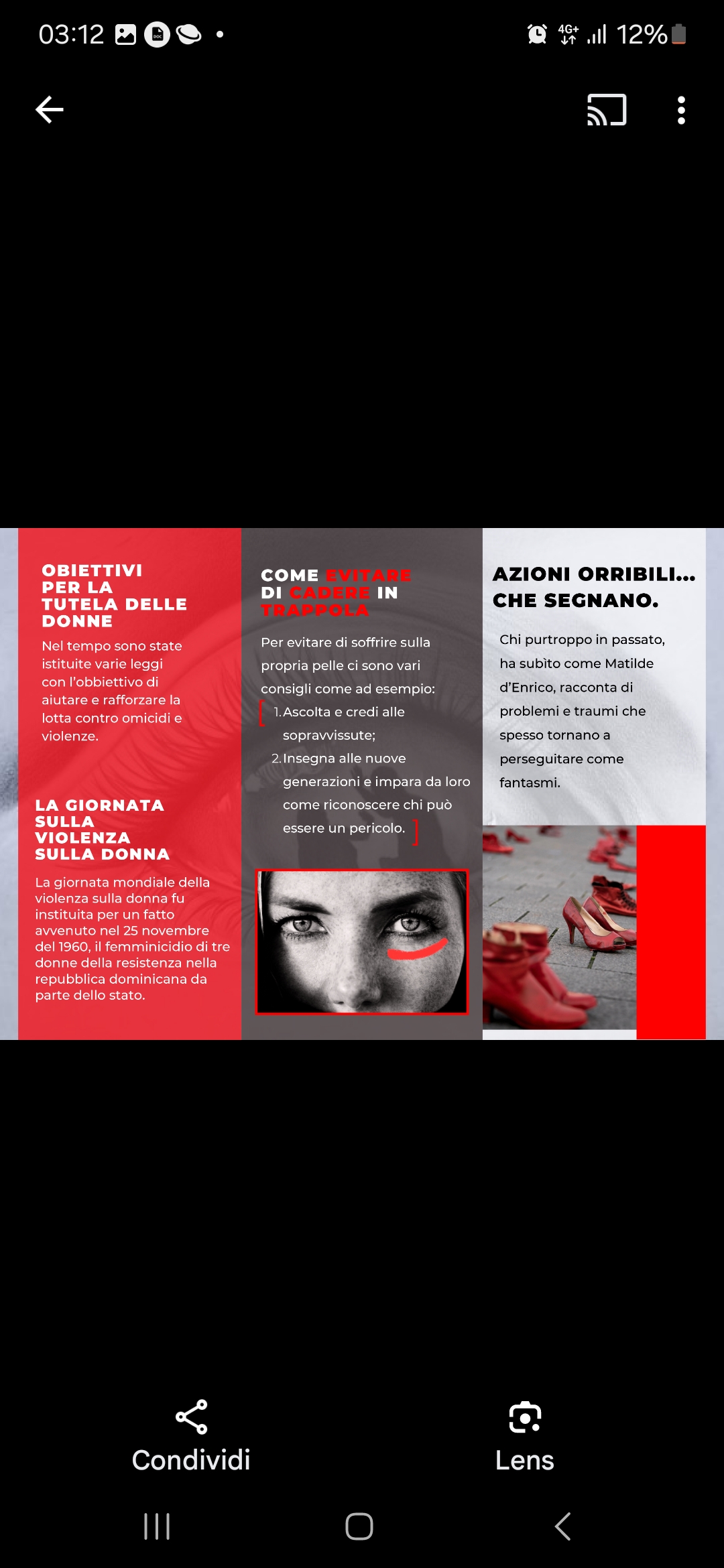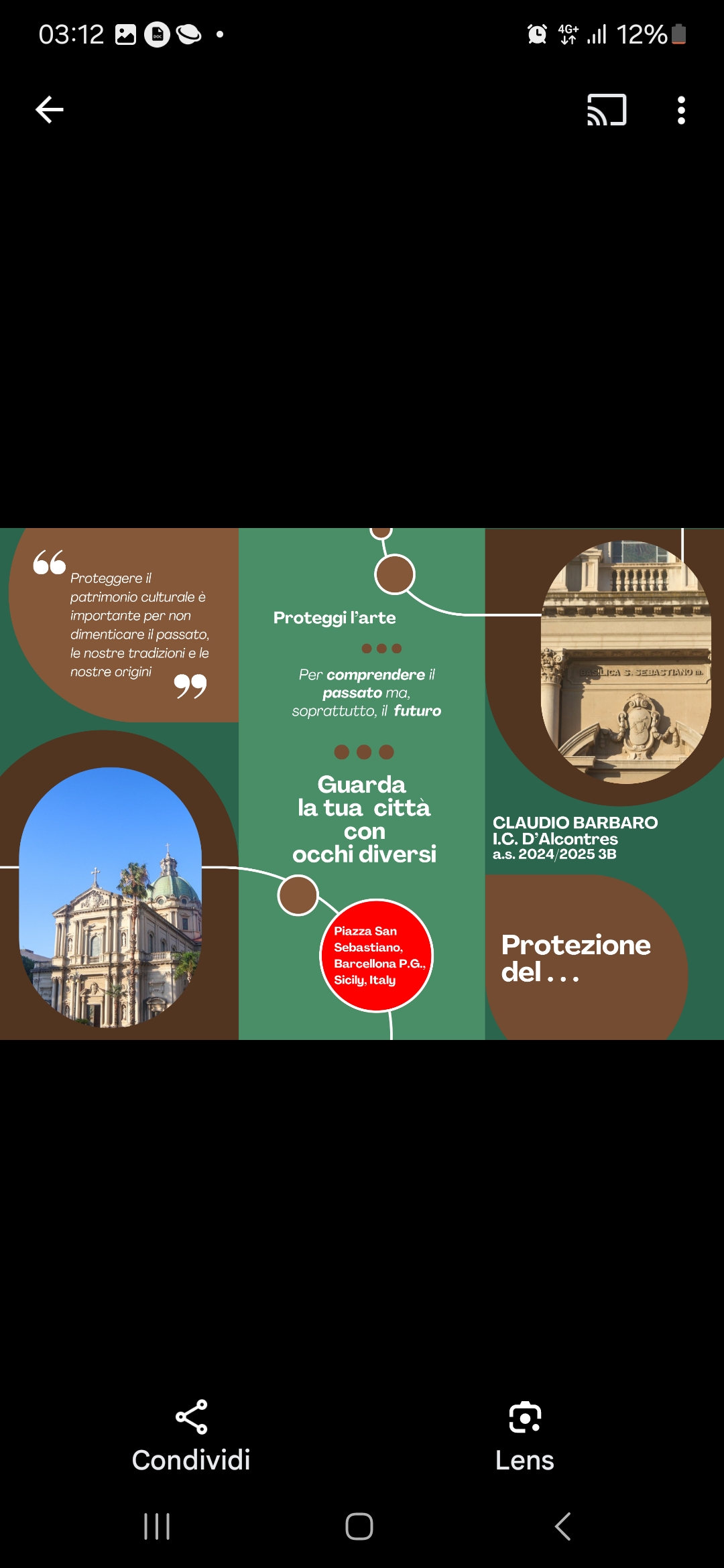Per la categoria Brochure vincono pari merito Barbaro Claudio che ha affrontato il tema del patrimonio culturale ed in particolare la Basilica di San Sebastiano di Barcellona P.G. e Genovese Simone con in tema della violenza sulle donne entrambi dell’I.C. D’Alcontres, rispettivamente delle classi 3B e 3D;