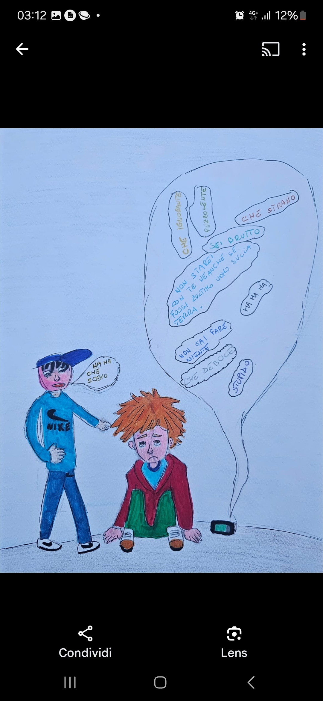 Per la categoria Poster digitali vince Italiano Andrea della classe 1C con un poster che ha attualizzato il tema del bullismo interpretando una storia di cronaca divenuta nota e per la categoria Disegni autografi vince Cicero Francesco della 1A sempre dell’I.C. D’Alcontres.