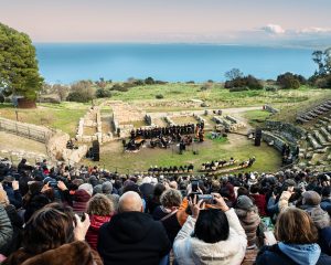 “Nel nostro progetto – sottolineano i maestri Costa e Munafò Siragusa – la musica torna a vivere, fiera, tra cielo e mare. Da oltre un lustro portiamo avanti una missione che si nutre di attica bellezza. ‘Respirare il Mito’ è appunto il concept che riassume tale dimensione, insieme culturale, artistica ed esistenziale. Mito che dialoga con la Storia. E si traduce in incanto e afflati d’eterne melodie per far vibrare le scene dell’antichità”.