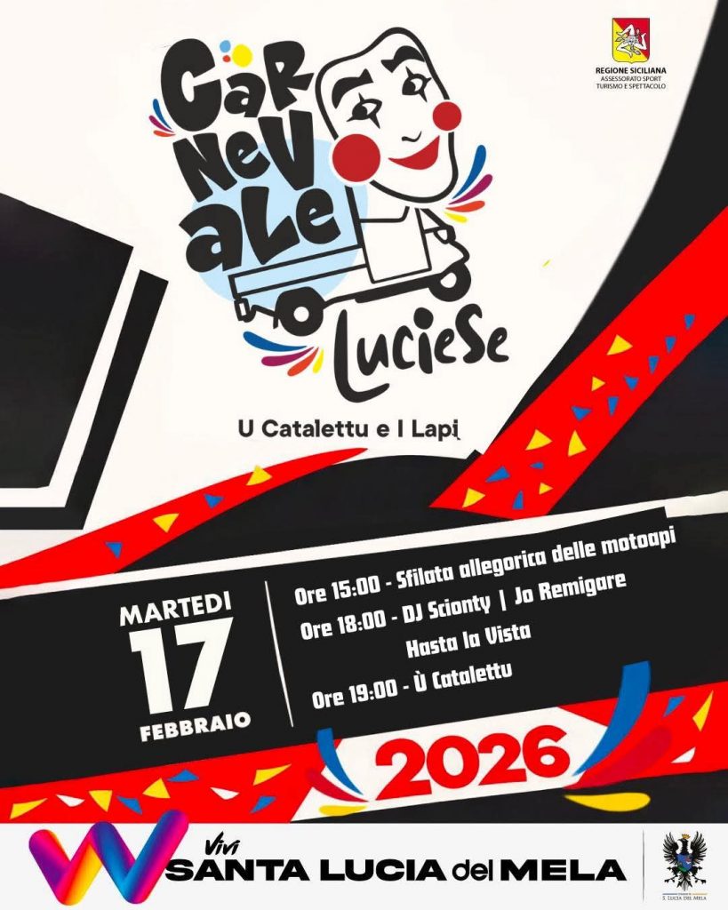 E tornando a Santa Lucia del Mela, come detto, oggi dovrebbe chiudersi il Carnevale Storico con la nuova Sfilata “I Lapi i Cannaluari” e la chiusura con “U Catalettu”, questo nello specifico il programma: