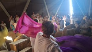 Fuori, intanto, all’ombra della grande Piramide illuminata dal sole, si alternavano le letture di poesie, racconti, pensieri estemporanei. Tutto questo mentre chi voleva salutare il sole di una nuova estate, lo faceva praticando yoga e meditazione. Gli studenti delle scuole sono esibiti, gli artisti hanno letto monologhi contro la guerra, mentre la bandiera della pace sventolava lungo la Piramide, al fianco di uno striscione che riproduceva l’orrore di Gaza. Oltre cento gli artisti partecipanti ed alla fine si torna a casa rigenerati.