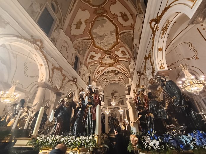 TRAPANI – Esistono orologi che non segnano il tempo con i secondi, ma con il battito dei cuori di un’intera città. A Trapani, quell’orologio si ferma – o forse inizia a correre davvero – alle 14:00 in punto del Venerdì Santo. Quando il portone della Chiesa barocca del Purgatorio si spalanca, non escono solo sculture: esce l’anima stessa di un popolo.