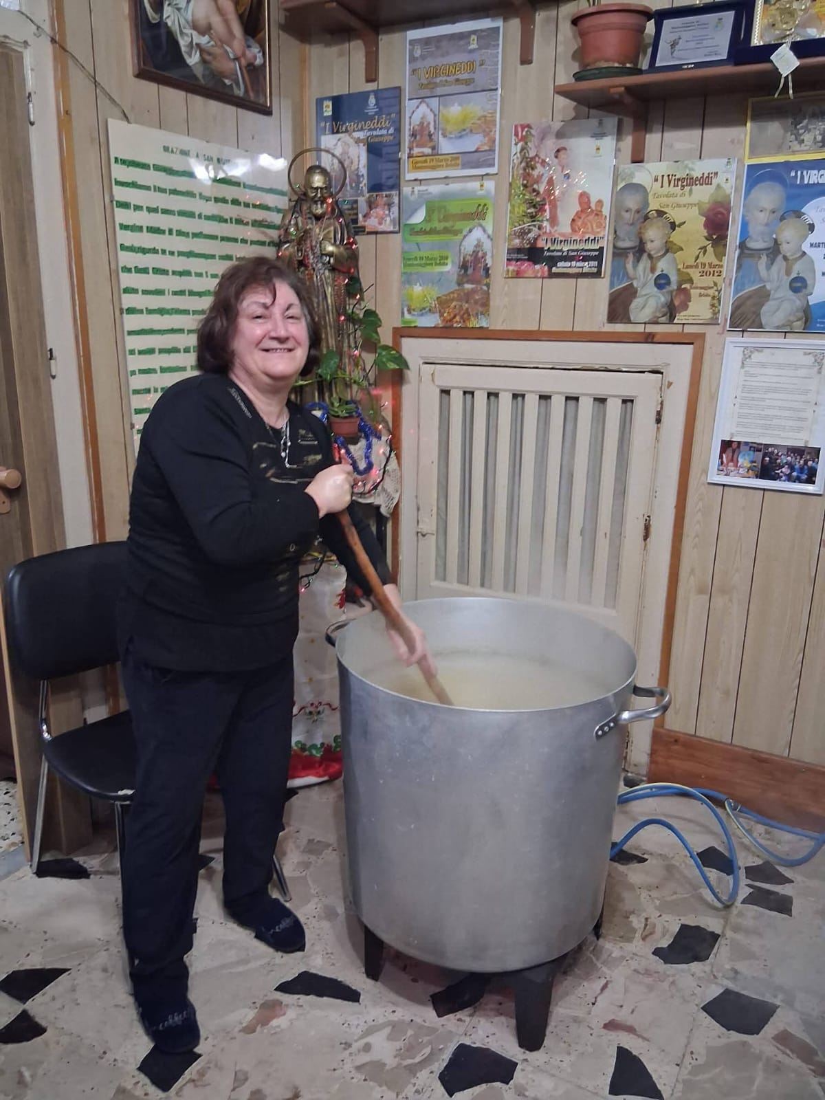 La Cuccìa non è solo un piatto, È un rito, un abbraccio tra generazioni, un profumo che porta con sé la storia di Montemaggiore Belsito, un tempo definito il “primo granaio della Sicilia”. Le donne del paese, con mani sapienti, ed esperte, hanno preparato questo dono seguendo un processo antico: il grano Maiorca, accuratamente pulito (o “annitato”), immerso in acqua per giorni, cotto a fuoco lento per ore, mescolato con ceci che simboleggiano gli “occhi di Santa Lucia” , in un connubio di sapienza e amore. “È un lavoro che parla di un intera comunita’, della terra, della vera fede, e con grande orgoglio.