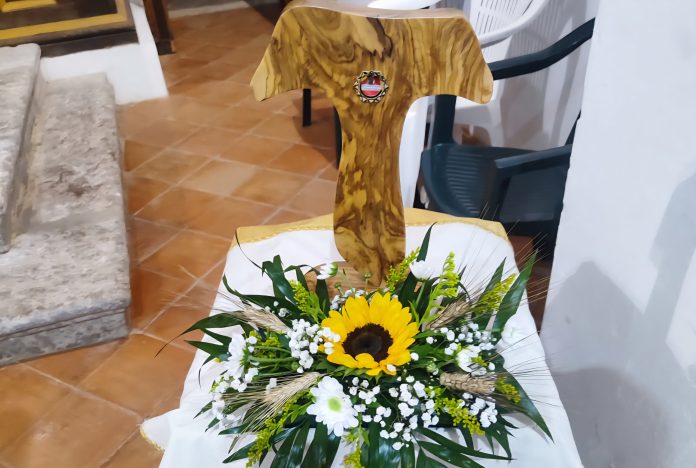 Ieri sera, giorno della vigilia, l’Adorazione Eucaristica nella Chiesa dei Cappuccini con esposto anche il Reliquiario a forma di Tao realizzato in legno d’ulivo dagli artigiani Nicolò Parisi e Mauro Oriti.