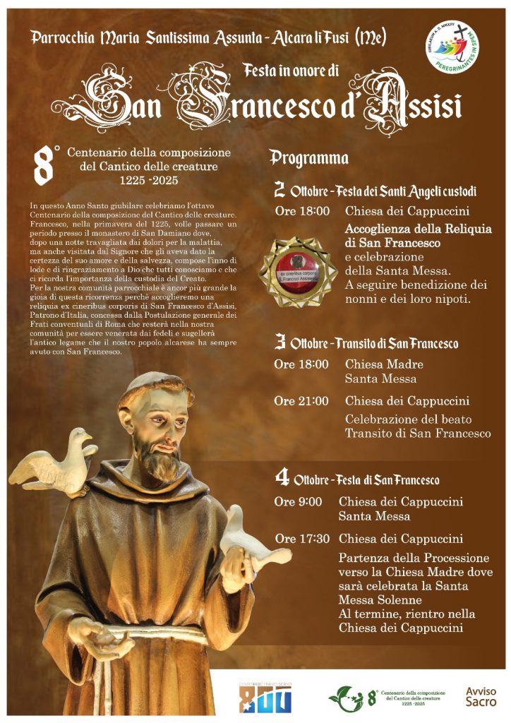 Grandi festeggiamenti nel Comune di Alcara Li Fusi per onorare San Francesco d’Assisi, la cui festa liturgica cade oggi, sabato 4 ottobre.
