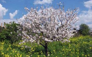 L’albero del Mandorlo ha sempre avuto, nel corso della storia, una valenza simbolica molto profonda e significativa. Esso venne portato qui in Sicilia dai Fenici per poi diffondersi in tutto il Mediterraneo. Nella mitologia greca il mandorlo aveva un duplice simbolismo: da un lato rappresentava la speranza e la delicatezza con i suoi fiori bianchi insieme al coraggio e alla determinazione, poiché è il primo albero a fiorire, evidenziando così tutta la sua forza; dall’altro lato era considerato simbolo di fragilità, poiché i suoi fiori, bianchi e rosati appena sbocciati, poco prima di cadere, diventano completamente bianchi, simboleggiando la finitezza della vita e il suo stesso ciclo che si conclude con la vecchiaia e i capelli bianchi.