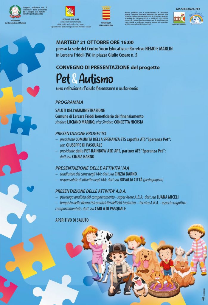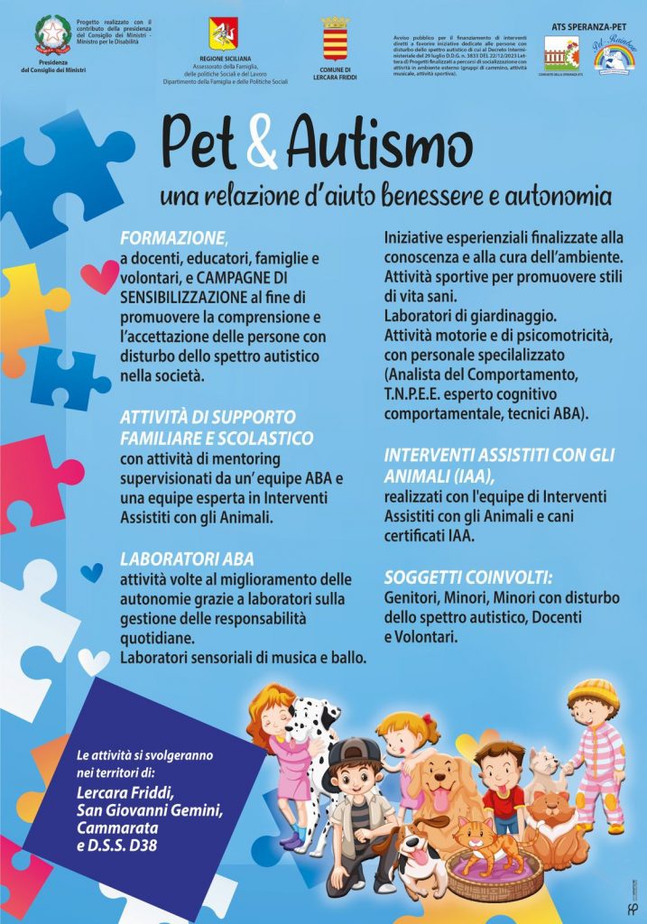Il Comune di Lercara Friddi, ente beneficiario del progetto, realizzerà l’iniziativa in collaborazione con l’ATS “Speranza – Pet”, composta da:
