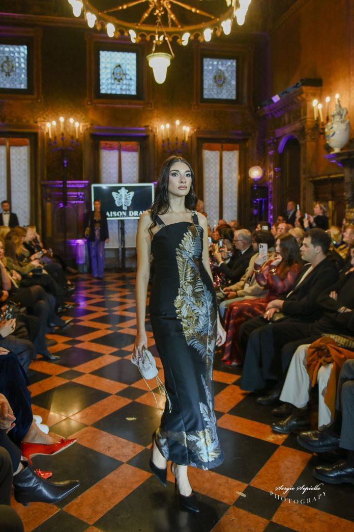 Proprio sulla passerella di Enrico Dray, Benedetta ha dato vita a un tributo alla magnificenza dei teatri d’opera italiani: avvolta in cromie drammatiche come il rosso teatrale e l’azzurro Tiepolo, ha esaltato silhouette strutturate e volumi preziosi, ricevendo scroscianti applausi da un pubblico d’élite composto da addetti ai lavori e stampa specializzata.