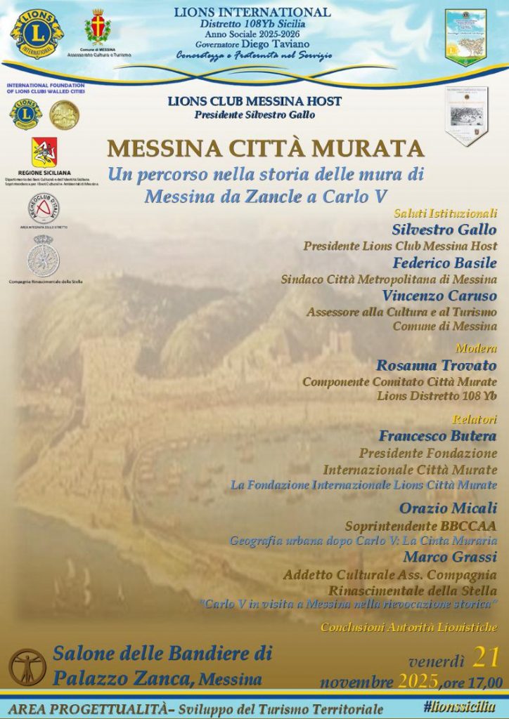 Organizzato dal Lions Club Messina Host e dalla Fondazione Lions Città Murate, in collaborazione con il Comune e la Soprintendenza BBCCAA di Messina, Archeoclub Area Integrata dello Stretto e la Compagnia Rinascimentale della Stella, l’evento ufficiale sancisce l’ammissione di Messina nella rete globale.