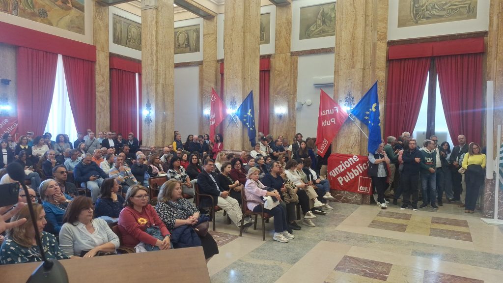 Sul piede di guerra i dipendenti del Comune di Messina: Cgil, Cisl, Uil, Csa e Silpol stamattina hanno convocato una infuocata assemblea generale che ha riempito il Salone delle Bandiere, segnando una rottura netta con l’Amministrazione comunale. La mobilitazione arriva dopo il mancato accordo sulla proposta sindacale relativa, in particolare, alle ex Progressioni Economiche Orizzontali (PEO) 2023. A far saltare il tavolo è stata una clausola richiesta da Palazzo Zanca, ritenuta inaccettabile dalle organizzazioni.