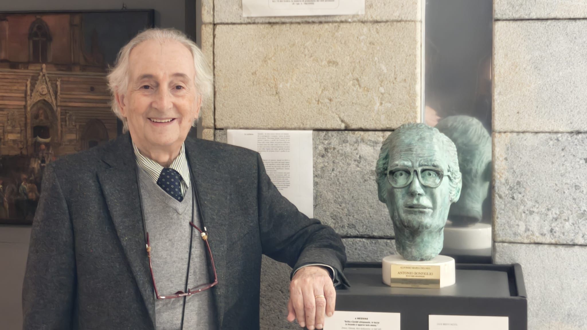 Da adesso sarà giustamente riportato alla memoria dei messinesi; significativo, infatti, l’incontro di sabato tra due ex allievi dello scultore Bonfiglio: il prof. Delogu e lo scultore Giuseppe Brancato; presenti alla cerimonia la dott.ssa Giovanna Famà, in rappresentanza del Museo Regionale, e l’Associazione Antonello da Messina, presieduta da Milena Romeo, che ha conferito a Roma al prof. Delogu il premio Antonello da Messina.