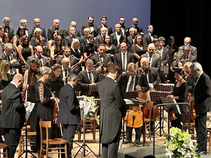 Un lunghissimo composto applauso all’ingresso degli orchestrali e un minuto di immobile silenzio chiesto dal direttore hanno preceduto lo spettacolo, percepito per tutta la durata come una profonda corale preghiera.
