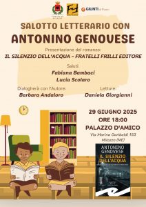Il 29 giugno alle ore 18:00 a Palazzo d’Amico nella Città di Milazzo si svolgerà un Salotto Letterario che vedrà protagonista lo scrittore barcellonese Nino Genovese ed il suo romanzo “Il silenzio dell’acqua”.