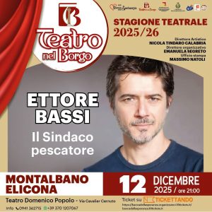 Venerdì 12 dicembre, alle ore 21.00, il Teatro “Domenico Popolo” ospiterà Ettore Bassi, attore tra i più apprezzati del panorama nazionale, con il monologo “Il sindaco pescatore”. Lo spettacolo racconta la storia di Angelo Vassallo, sindaco di Pollica, assassinato nel 2010 per il suo impegno contro la criminalità e a favore dell’ambiente. Un tributo teatrale che ha commosso platee in tutta Italia, diventando simbolo di legalità e resistenza civile.