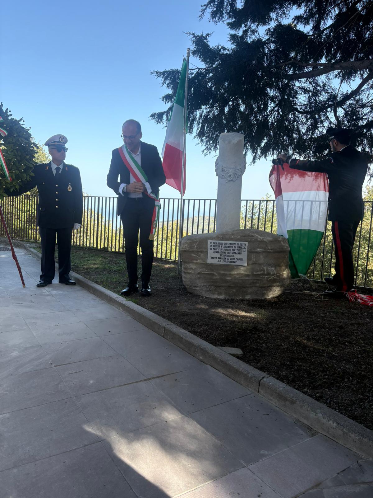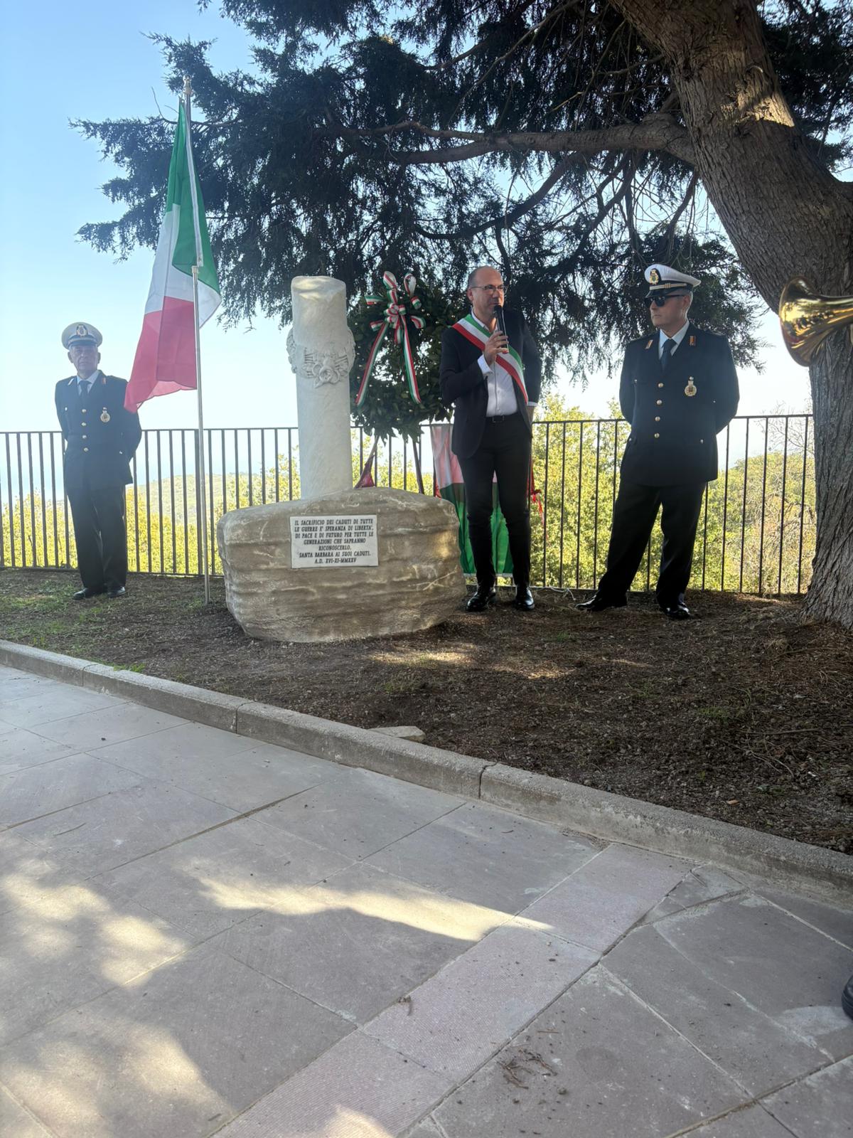 La frazione di Santa Barbara è stata scelta come sede del memoriale, realizzato in un’area che finora non disponeva di un luogo dedicato ai caduti. «Abbiamo fortemente voluto questo monumento — ha dichiarato Todaro — non solo come segno tangibile di gratitudine, ma anche come monito per il futuro, affinché il sacrificio dei nostri caduti non venga mai dimenticato. Ricordare significa impegnarsi ogni giorno per costruire una società più giusta e pacifica; la cerimonia vuole essere insieme un tributo a chi ha perso la vita per la nostra libertà e un richiamo alla responsabilità di tutti nel preservare i valori di giustizia, pace e solidarietà».