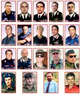 Questi i diciannove italiani che persero la vita il 12 novembre 2003 nella strage di Nassiriya: