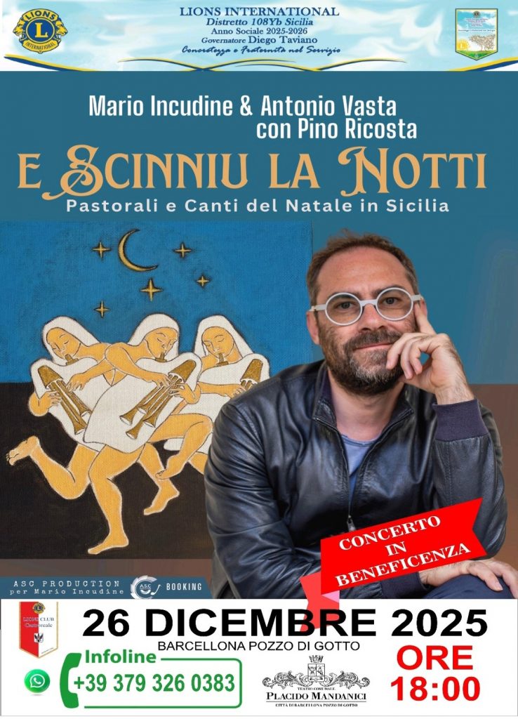 La magia del Natale si trasforma in un gesto concreto di amore e solidarietà. Nel pomeriggio di oggi, 26 dicembre, alle ore 18:00, il prestigioso Teatro Placido Mandanici ospiterà un evento eccezionale che unisce la grande musica d’autore con un’iniziativa benefica senza precedenti: il concerto “E scinniu la Notti” di Mario Incudine.