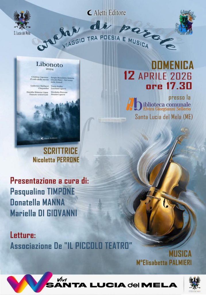 Esistono luoghi dove le parole non si limitano a essere lette, ma iniziano a vibrare. È questa l’essenza di “Archi di Parole”, l’appuntamento culturale che domenica 12 aprile, alle ore 17:30, trasformerà la Biblioteca Comunale “Elvira Giorgianni Sellerio” di Santa Lucia del Mela in un salotto artistico d’eccezione.