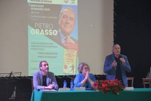 Mattinata molto intensa quella di ieri, mercoledì 28 maggio 2025, al Teatro Comunale “Riccardo Casalaina” di Novara di Sicilia, che ha ospitato un evento di grande valore civile e formativo: l’incontro degli studenti della Scuola Secondaria di 1° grado dell’I.C. Novara di Sicilia con il Presidente Pietro Grasso, magistrato simbolo impegnato in prima linea nella lotta alla mafia, già Presidente del Senato della Repubblica nonché autore del libro “Paolo Borsellino parla ai ragazzi”.